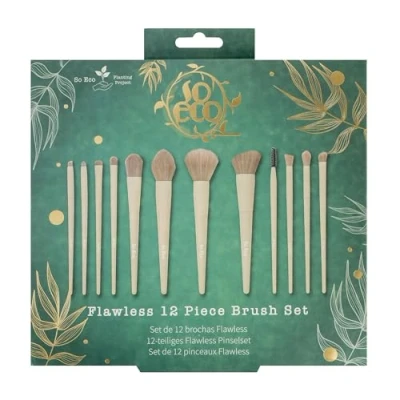 COMPLETE 12-PIECE BRUSH SET - Includes all essential brushes for a flawless full-face look: foundation, powder, contour, blush, eyeshadow & brow brushes. ECO-FRIENDLY BIRCHWOOD HANDLES - Sustainable, durable, and stylish brushes crafted from responsibly sourced birchwood. SOFT, PREMIUM SYNTHETIC BRISTLES - Vegan-friendly fibres designed for smooth application, seamless blending, and even coverage. VEGAN & CRUELTY-FREE - Made entirely from non-animal materials and never tested on animals, PETA approved. GIVING BACK TO NATURE - So Eco plants 1 tree for every 100 products sold, helping to restore forests and support a greener planet.