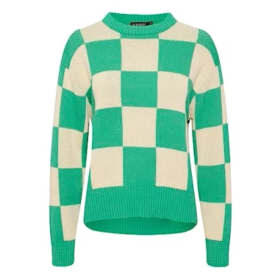 Soaked In Luxury Women's Pullover Graphic Print Regular Fit Long Sleeves, Sea Green and White Large Chec, XS