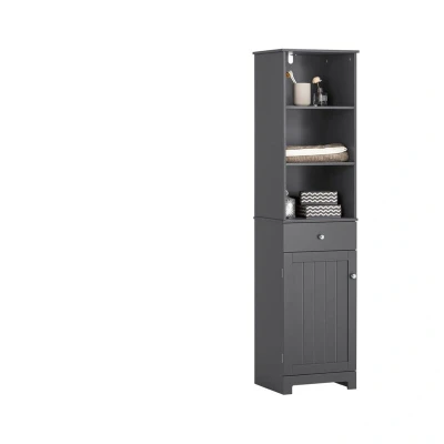 SoBuy Bathroom Storage Cabinet Tall Slim Freestanding Unit with Door and 3 Open Shelves, Narrow Cupboard 1 Drawer for Toilet, Bedroom, Hallway 40x161x35 cm BZR17 DG