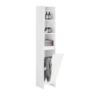 With the Tall and Slim Bathroom Storage Cabinet, organizing your bathroom space has never been easier. Designed to fit snugly into small or narrow bathrooms, this chic cabinet boasts compact dimensions of W30 x D30 x H170 cm, ensuring it's perfect for limited floor areas. The thoughtful design features a discreet, tilting laundry hamper at the bottom, providing a hygienic solution for managing dirty clothes without compromising aesthetics.