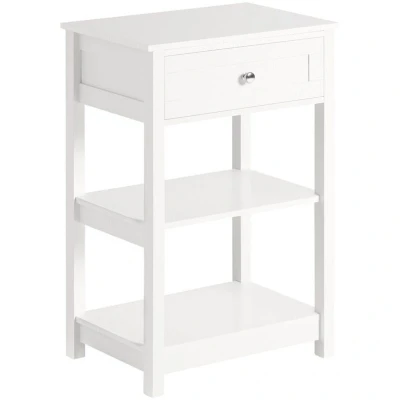 General description SoBuy Bedside Table is a stylish and functional addition to your bedroom or living room. Featuring a modern and simple design, it seamlessly blends with both modern and traditional decor. Made from high-quality MDF with a white finish, this bedside table offers durability and elegance. Technical specifications Material: MDF Dimensions: W45 x D30 x H68 cm Weight: 8 kg Load capacity: 25 kg Installation The item comes in a flat pack and requires self-assembly. Detailed instructions are supplied for easy setup. Usage This bedside table is perfect for placing beside your bed or sofa, providing easy access to your essentials. It features one drawer and two shelves, offering ample storage space for accessories and decorative items. Other information