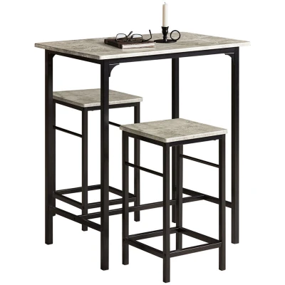 The 3-Piece Breakfast Bar Set comes flat-packed with all necessary fittings and clear instructions for straightforward assembly. The low-maintenance, wipe-clean surfaces make it an excellent choice for busy households, removing the hassle of complicated upkeep. When put together, this set not only serves as a dining area but also as a stylish focal point in your kitchen or living room.