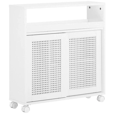 SoBuy BZR119 W, Narrow Bathroom Cabinet Storage with 2 Sliding Doors, Toilet Paper Roll Holder on Wheels