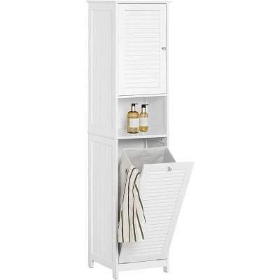 SoBuy BZR124 W, Bathroom Tall Cabinet Cupboard Storage with Laundry Basket, White
