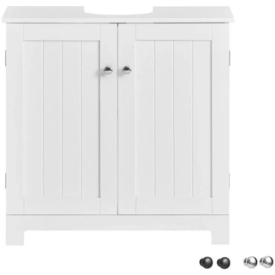 General description With this under sink cabinet, maximizing space in your bathroom becomes easier. It features a cupboard with an internal adjustable shelf to ensure ample storage for all your bathroom essentials. The 'U' shaped cut-out slots allow it to fit neatly underneath most pedestal sinks, with a cut-out size of W18 x D23cm on all the shelves. This space-saving storage solution helps keep your bathroom tidy and organized while adding a fashionable appearance that fits perfectly with any style of decor. Technical specifications Material: MDF Dimensions: W60 x D30 x H60cm Weight: 8.7kg Load capacity: 30kg Installation The item comes in a flat pack and requires self-assembly. Detailed instructions are supplied. Other information Handles in 2 colors (black and silver) are included in the package. The basin and decorative elements are NOT included in the delivery.