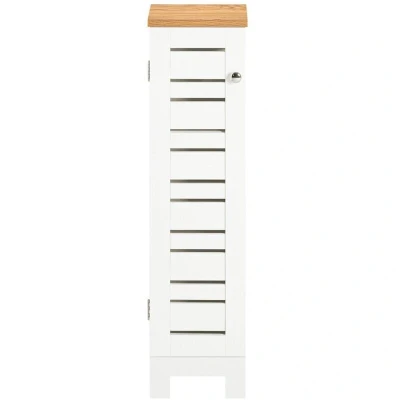General description This cabinet is the perfect bathroom storage solution! Its compact design fits into small spaces in bathrooms, making it an ideal choice for organizing essentials. The top is perfect for storing items like books and smartphones or displaying small plants and decorations. With three storage compartments behind the door, it provides ample space for toilet paper and other bathroom necessities. An opening on the right side allows for easy access to toilet paper, while the slatted door design promotes airflow and prevents steam and mildew build-up. This space-saving storage solution helps keep your bathroom tidy and organized, and its fashionable appearance complements any decor style. Technical specifications Material: MDF Dimensions: W20 x D18 x H75 cm Weight: 4.8 kg Load capacity: 10 kg Installation Item comes in a flat pack and requires self-assembly Detailed instructions supplied Other information The decorative elements are not included in the delivery Includes an