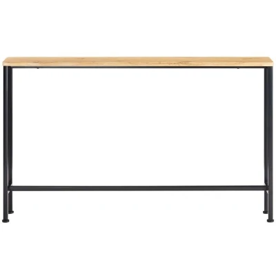 The sleek narrow lines of this entryway wall table make it the perfect space saving storage display solution for any apartment, home or office. The table top is ideal for storing something like keys and books you might need in reach, or photos and plants you want to display. It features adjustable feet under each metal leg to ensure it stay level on uneven floor. Made of high quality MDF with wooden effect and black powder coated steel frame. Sturdy and stable. A diverse and contemporary product, would be suitable for a variety of locations, like hallway, living room and office. The simple lines and subtle industrial style will give a contemporary twist to the focal point of any living room. Product Details Material: MDF, metal. Dimensions: W120 x D20 x H81cm. Weight: 5kg. Load capacity: 50kg. Item comes in a flat pack and requires self-assembly. Detailed instructions supplied. The decorative elements are not included in the delivery.