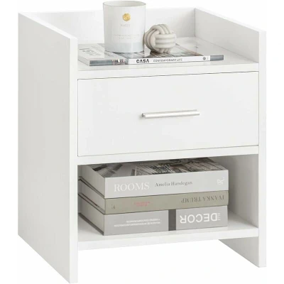 This contemporary nightstand is designed to enhance any space with its elegant and modern appeal. Featuring a clean, white finish and a minimalist design, it is an ideal addition to your bedroom, living room, or office.
