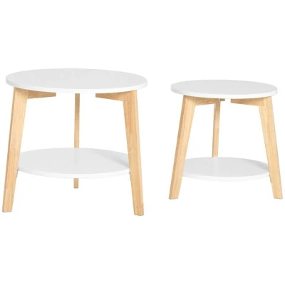 Crafted from high-quality MDF and sturdy rubber wood, the tables boast a durable design. The tabletops and shelves are finished with a sleek white lacquer, giving them a modern touch. The legs, made from varnished rubber wood, not only provide stability but also enhance the overall aesthetic of the tables.