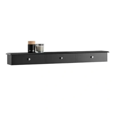 SoBuy Floating Shelf with 3 Drawers Modern Wall Mounted for Bedroom, Hallway & Living Room, Black W94 x D15 H10cm FRG43 L SCH