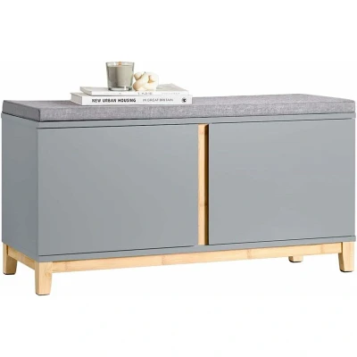 SoBuy FSR117 HG, Hallway Storage Bench Shoe Rack Cabinet with 2 Doors and Seat Cushion, Grey