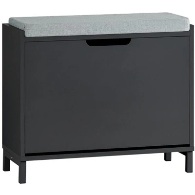 SoBuy FSR151 K SCH, Hallway Shoe Bench Rack Cabinet with Seat Cushion and Flip drawer, Black