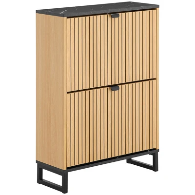 SoBuy FSR202 N, Shoe Cabinet Storage Slim Narrow Rack with Flip Drawers for 8 12 Pairs, Hallway Unit in Black Marble & Light
