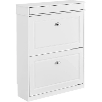 SoBuy FSR78 L W, Shoe Rack Cabinet with 2 Flip Drawers, Slim Storage Hallway, Entryway, Corridor, Small Spaces, MDF Wooden Cupboard, Whit