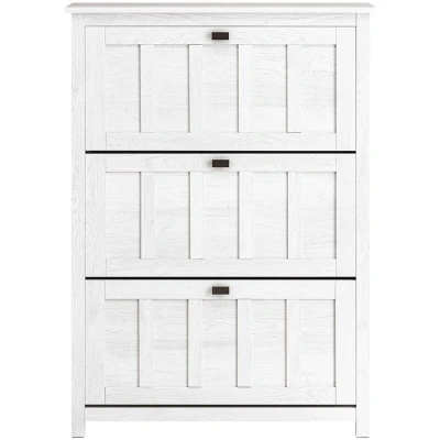 The modern design of the 3 flip-drawer shoe cabinet makes it an ideal choice for any home, particularly suited for hallways or porches. This sleek unit combines functionality with elegance, offering ample storage while seamlessly blending into various home décors. Finished in a sophisticated vintage white, this cabinet is both classic and inviting, providing a tidy appearance that enhances your entryway.
