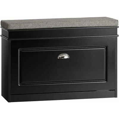 SoBuy Hallway Shoe Bench Rack Cabinet with Seat Cushion and Flip drawer Black W75 x D24 H51cm FSR82 L SCH