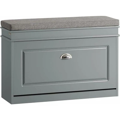 SoBuy Hallway Shoe Bench Rack Cabinet with Seat Cushion and Flip drawer Grey W75 x D24 H51cm FSR82 L HG