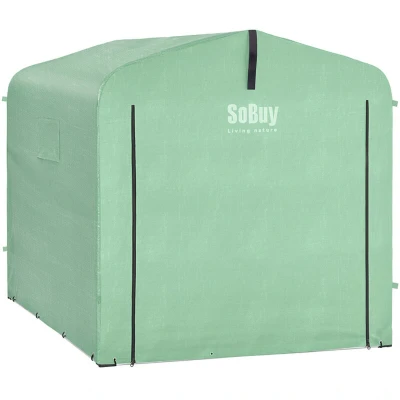 SoBuy KLS11-L-GR Outdoor Garden Shed Waterproof, Motorcycle Shelter with Hooks, Storage for Bike and Tools, Green, 159x219x165cm Spacious and versatile outdoor storage solution This sturdy garden shed is designed to effectively protect your outdoor equipment. It offers ample storage space for bikes, gardening tools, lawnmowers, cushions or barbecue equipment. Delivered with two types of hooks, it allows you to hang helmets, tools and other accessories for neat and accessible storage. Perfect as a motorcycle shelter, bike garage or temporary storage space in the garden, on the terrace or in the driveway. The integral zip closure ensures complete protection against dust, wind and sunlight. Silver inner coating for better thermal insulation and increased resistance to prolonged sun exposure. Two ventilation openings promote good air circulation, thus limiting condensation, humidity and unpleasant odors. Delivered with tie-down straps and storm anchors for enhanced stability against the