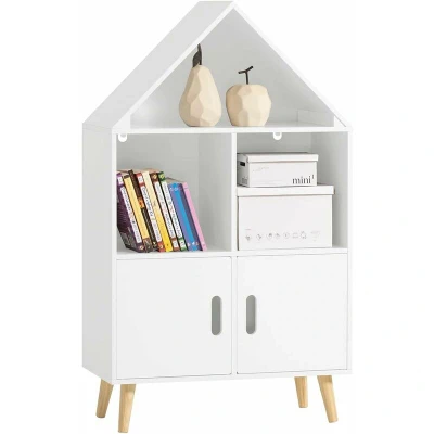 SoBuy KMB58 W, House Shape Design Children Kids Bookcase Book Shelf Toy Storage Display Rack with 2 Doors and 3 Compartments
