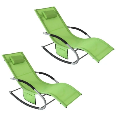 SoBuy OGS28 GRx2, Set of 2 Outdoor Garden Rocking Chair Relaxing Sun Lounger with Side Bag, Green