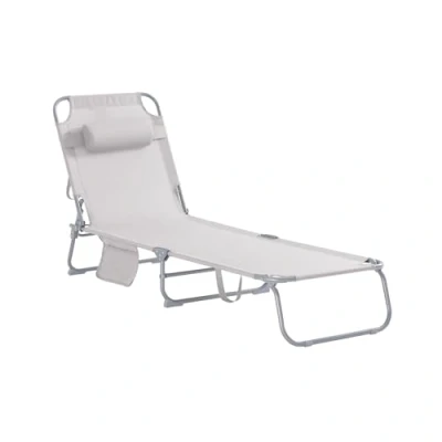 ManoManoLightweight and sturdy outdoor folding chair is good for value! 5-position adjustable backrest tilt up to 90 degrees to fit your different demands. Powder coated strong metal tube frame, smooth and rust-resistant. It’s very comfortable to lie with the headrest. The side bag is ideal for phone, book, sunglasses, drink, etc. Foldable, easy to store away. No assembly required. Ready to use. Product Details Material: Metal, textoline. Dimensions (unfolded): L195cm x W63 x H30cm. Dimensions (folded): 65 x 62 x 14cm. Weight: 5.8kg. Load capacity: 120kg. The decorative elements are not included in the delivery.