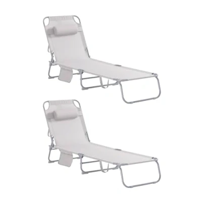SoBuy OGS35 MIx2, Set of 2 Textoline Reclining Folding Chair, Adjustable Back Camping Chair Outdoor Garden Beach Deck Sunlounger, Beige