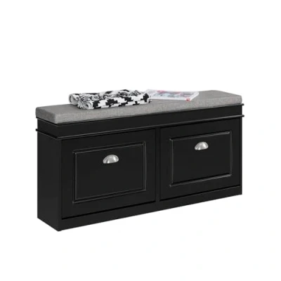 SoBuy Shoe Storage Bench with Seat Cushion 2 Flip Drawer Cabinet, Hallway Rack Organizer, for Entrance, Bedroom and Indoor Use, Black FSR64 SCH