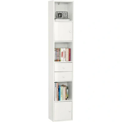 General description With this cabinet, maximizing space in your bathroom becomes easier. It features 3 compartments, 2 drawers, and 2 doors to ensure ample storage for all your bathroom essentials. This space-saving storage solution helps keep your bathroom tidy and organized. Additionally, it can be used as a bookcase or storage shelf in the living room and study room. Made of high-quality particle board with a melamine veneer and PVC edge, it is stable and durable. The fashionable appearance ensures it fits perfectly with any style of decor, providing maximum storage while taking up minimal space. Technical specifications Material: Particle board Dimensions: W33 x D24 x H188 cm Weight: 20 kg Load capacity: 40 kg Installation Item comes in a flat pack and requires self-assembly Detailed instructions supplied Other information The decorative elements are not included in the delivery Includes an anti-tipping device for added stability and safety