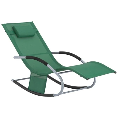 General description This modern, breathable, and ergonomically designed rocking chair is perfect for both indoor and outdoor use, offering complete comfort and relaxation. Enjoy the gentle rocking motion and breathable mesh fabric that keeps you cool and supported, making it ideal for lazy afternoons in the garden or relaxing on the patio. The chair features a detachable headrest cushion, a side bag for storage, armrests, and a footrest, all designed to help you fully unwind. Technical specifications Material: Powder-coated steel, breathable mesh fabric (Textilene) Dimensions: W63 x D150 x H87 cm Weight: 10 kg Load capacity: 150 kg Compatibility and accessories Includes a detachable headrest cushion for enhanced neck support Features a side bag for storing personal items like phones, books, or water bottles Installation Item comes flat-packed and requires self-assembly Easy-to-follow instructions included Usage Perfect for use in the garden, on the balcony, or while camping Enjoy