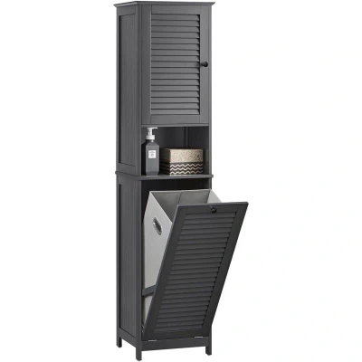 SoBuy Tall Bathroom Storage Cabinet with Laundry Basket Slim Freestanding Unit, Narrow Cupboard Shelves, Grey Furniture 40x170x38 cm BZR124 DG