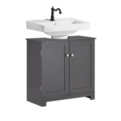 SoBuy Under Sink Bathroom Cabinet Storage Unit with Doors and Adjustable Shelf MDF Storage, suitable for Pedestal Sinks, Dark Grey, 60x60x29cm, BZR18 II DG