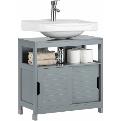 SoBuy Under Sink Bathroom Cabinet with Double Sliding Doors, Slim Storage Unit for Small Spaces, Toilet Cupboard Organizer, Floor Basin, Grey, 60x30x61cm, FRG128 SG