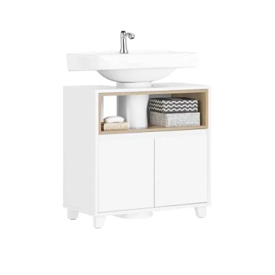 In summary, this under sink bathroom cabinet is the perfect blend of functionality and style, offering a solution to keep your bathroom organized and clutter-free. Whether you're redecorating or simply looking for a practical storage option, this cabinet is designed to meet your needs effortlessly.