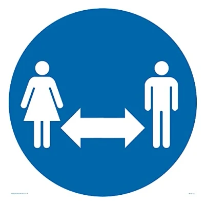 M916 : Keep distance This sign is made from vinyl high tack A stickier sticker. Uses a stronger adhesive to make it more suitable for plastic surfaces like Wheelie Bins or where the sticker might get rubbed. S20 square Sign Text: Social distance symbol