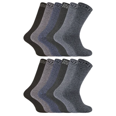 12 Pack Mens Cotton Rich HIKE SocksIf you are looking for a sock that is great for hiking, work or any other outdoor activities then these Men’s Cotton Rich HIKE Socks would be a great companion on your next trek. Not only are these made for Hiking but these are great value for money, coming in a 12 Pair Value Pack so you’ve got plenty of socks to last in the great outdoors!These socks are made from a cotton rich fabric providing ultimate comfort and durability. They also have full cushioning that protects high impact areas and reduces the chance of blisters and discomfort.These also have a comfort welt so that isn’t too tight so that it creates nasty constriction rings but it's not too loose so that they fall down easily. The word “HIKE” is stitched at the top of the socks to pop up over the top of your boots.These socks are available in 2 Variations including Grey or Blue assortments. They are available in sizes 6-11 UK / 39-45 EU / 7-12 US and are made from 63% Cotton, 34% Polyester, 2% Nylon, 1% Elastane. They come in a Pack of 12 and are Machine Washable.Extra Product Details12 Pack Hiking SocksValue For MoneyFully CushionedComfort WeltMade For The OutdoorsComfort & DurabilityGrey or Blue Colour Assortments63% Cotton RichMen’s One Size: 6-11 UKMachine Washable