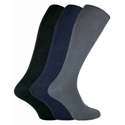 Every man needs a pair of super comfortable and knee high socks in his life, and these 100% cotton socks provide just that! When it comes to comfort, everyone agrees that the best bet is traditional knee high cotton socks as of the cottons natural softness and moisture wicking. These socks are fully ribbed to help keep them up, and are great for everyday wear, or as light, thin pair of formal knee high socks. Everyday technology for any mans feet! These premium quality socks are 100% Cotton which means that they are extra soft and comfortable, making them perfect for wearing for long days at work or around the house. You won't suffer with any nasty irritation while wearing these socks, and they will make sure that you are comfortable as you can be! As of their cotton content these socks are breathable and will help keep feet cool and fresh. These socks are also knee high to ensure they cover your calf and are great for wearing in formal situations where crew length socks are too short. These socks are a size 6-11 uk, and are available in the colour of black. They are available in a 3 pair pack..