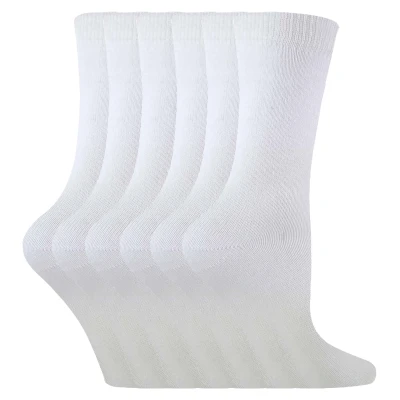 Sock Snob 6 Pairs Kids Boys Girls Unisex Mid Calf Solid Color Casual Cotton Dress Socks (12 3 UK, White)