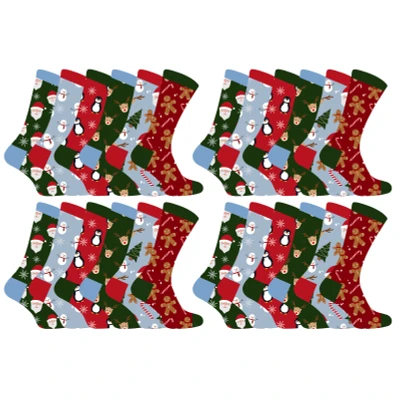 If you're looking for a gift that your kids will love, look no further! Our own branded Sock Snob Kids Christmas Socks are the perfect stocking stuffers for your little ones this holiday season. They come in red, green and light blue colours so they'll go with any outfit. Each pair comes with a festive design which include: Santa Claus, Snowmen, Penguins, Reindeer, Christmas Trees and Gingerbread Men! They're just waiting to keep their feet warm and comfy through the holiday season. Made from cotton rich fibres and are designed to be full of comfort on little feet and have a comfort top to keep them in place. These would make a great stocking filler and you can choose from a range of multipack options: 6 pairs, 12 pairs or 24 pairs - so you can get even more bang for your buck! We all love a little bit of Festive cheer at Christmas time, and these Children’s Festive Christmas Socks from Sock Snob are the perfect way to add some festive colour to their wardrobe. If you're looking for the perfect Xmas gift for your little ones or for someone else's children, look no further than our Kids Festive Christmas Socks from Sock Snob. These socks come in packs of 6, 12, or 24 Pairs, with many festive patterns per pack. They’re made from 51% Cotton 31% Nylon 16% Polyester 2% Elastane, are available in 2 sizes: 9-12 UK (27-30 EUR, 10-1 US) and 12-3 UK (30-36 EUR, 13-4 US) and are machine washable.