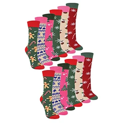 Amazon🤶🏼 THE PERFECT XMAS GIFT - It's never easy to find the perfect present for the women in your life, but we've got a great suggestion for you, our very own branded Sock Snob Ladies Festive Christmas Socks! 🎁 6 CHRISTMAS PATTERNS - Each pair comes with a festive design which include: Candy Canes, Fairisle, Christmas Trees, Snowflakes, Xmas Puddings and Gingerbread Men. 🤶🏼 VALUE MULTIPACKS - These would make a great stocking filler and you can choose from a range of multipack options: 6 pairs, 12 pairs or 24 pairs - so you can get even more bang for your buck! 🎄 COTTON RICH - Made from cotton rich fibres, these socks are full of comfort and have a comfort top to keep them in place. 🤶🏼 FULL OF FESTIVE CHEER - Whether you are looking for Xmas socks for yourself to go with your Christmas jumper or for a family member you’ll be satisfied with our Women’s Festive Christmas Socks.