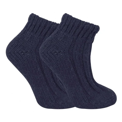 Sock Snob Ladies Chunky Knit Winter Warm Ribbed Low Cut Wool Blend Ankle Boot Socks (4 8 uk, 04 Navy)