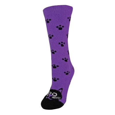 Sock Snob Ladies/Womens Fluffy Non Slip Cute Novelty Slipper Socks with Animal Designs (4 7 UK, Cat)