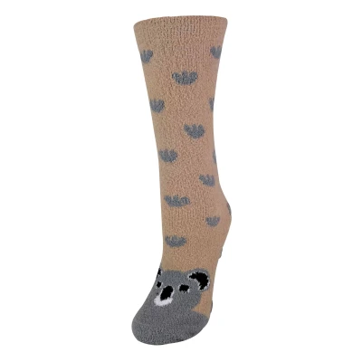 Sock Snob Ladies/Womens Fluffy Non Slip Cute Novelty Slipper Socks with Animal Designs (4 7 UK, Koala)