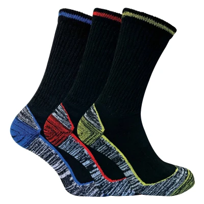 If you're looking for a pair of work socks that are reliable in heavy duty work, then these bamboo work socks are the best choice. These work socks also have a thick piled bamboo cushioned foot bed. This provides comfort while walking around on your feet for long periods of time. The viscose bamboo in the sole also allows your feet to breathe and wick away moisture to leave feet odour free and dry. Our bamboo sole work socks are great for wearing with steel toe capped boots and industrial boots as of their reinforced heel and toe. These work socks also have a true heel and toe to prevent movement in shoes and improve their overall fit. Their reinforced terry loops are there for extra comfort and longevity as well as smooth toe seams for use with steel toe boots. They are also cotton rich for natural softness and comfort. These socks come in size 4-7 and 6-11 uk. They are also available in different pack quantities of 3, 6 or 12 pairs.