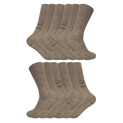 Sock Snob Mens Loose Fitting Top Bamboo Socks 12 Pair Multipack Diabetic Friendly with Soft (6 11, Beige)
