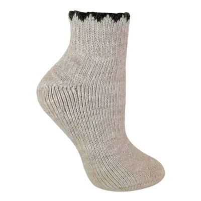 Available in two popular winter season colours, our Ladies Alpaca Boot Sock is perfect for the winter. Whilst alpaca wool is similar to lambs wool, it is considered to be a much warmer and softer fibre, creating a luxurious feel. Alpaca wool also contains no lanolin making it a more naturally hypoallergenic fibre. Alpaca wool is also more naturally water-resistant than lambswool, making it the perfect fibre for boot socks. These socks are beautifully crafted and are available in two colours. They fall just about the ankle at quarter length and have a fashionable contrasting trim around the top of the sock making them ideal for wearing with booties. These socks are so cosy they would be a fabulous edition to anyone's lounge wear. These socks are available in black and beige, are a UK size 4-8 for women, and are made of 60% Acrylic, 20% Wool, 10% Alpaca, 8% Polyamide, 2% Elastane. They are machine washable.