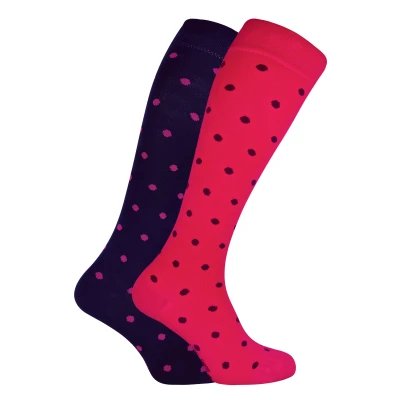 Sock Snob Womens Long Knee High Bamboo Socks 2 Pair Pack Plain & Patterned Gift for Ladies (4 7, Polka Dot)