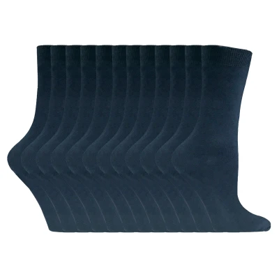 Sock Snob Womens Plain Cotton Rich Socks 12 Pair Multipack Thin Comfy Colourful Crew Ankle for Ladies (4 8, Navy)