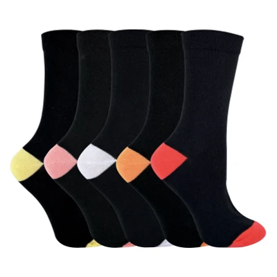 5, 10 and 20 Pairs of Assorted Coloured Toe, Heel and Tipped Tops Sock Snob cotton blend comfort socks perfect for any occasion and everyday use. The socks have a Coloured Heel and Toe The socks have a soft grip top and coloured tip. Additional Product Details * buy 5, 10 or 20 pairs * Assorted Colours * Ladies Fashion Socks * Size 4-6 UK * Perfect for everyday use * Breathable Cotton