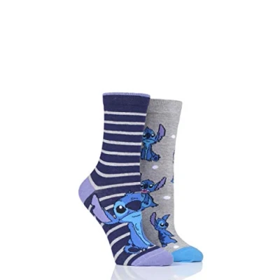 SockShop Disney Ladies Lilo and Stitch Cotton Socks Pack of 2 Assorted 4 8