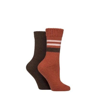 SockShop Ladies Cushioned Boot Socks Wool Mix Striped & Plain in a 2 Pair Multipack for Outdoors, Hiking Walking (UK, Numeric, 4, 8, Regular, Honey Glaze Striped)